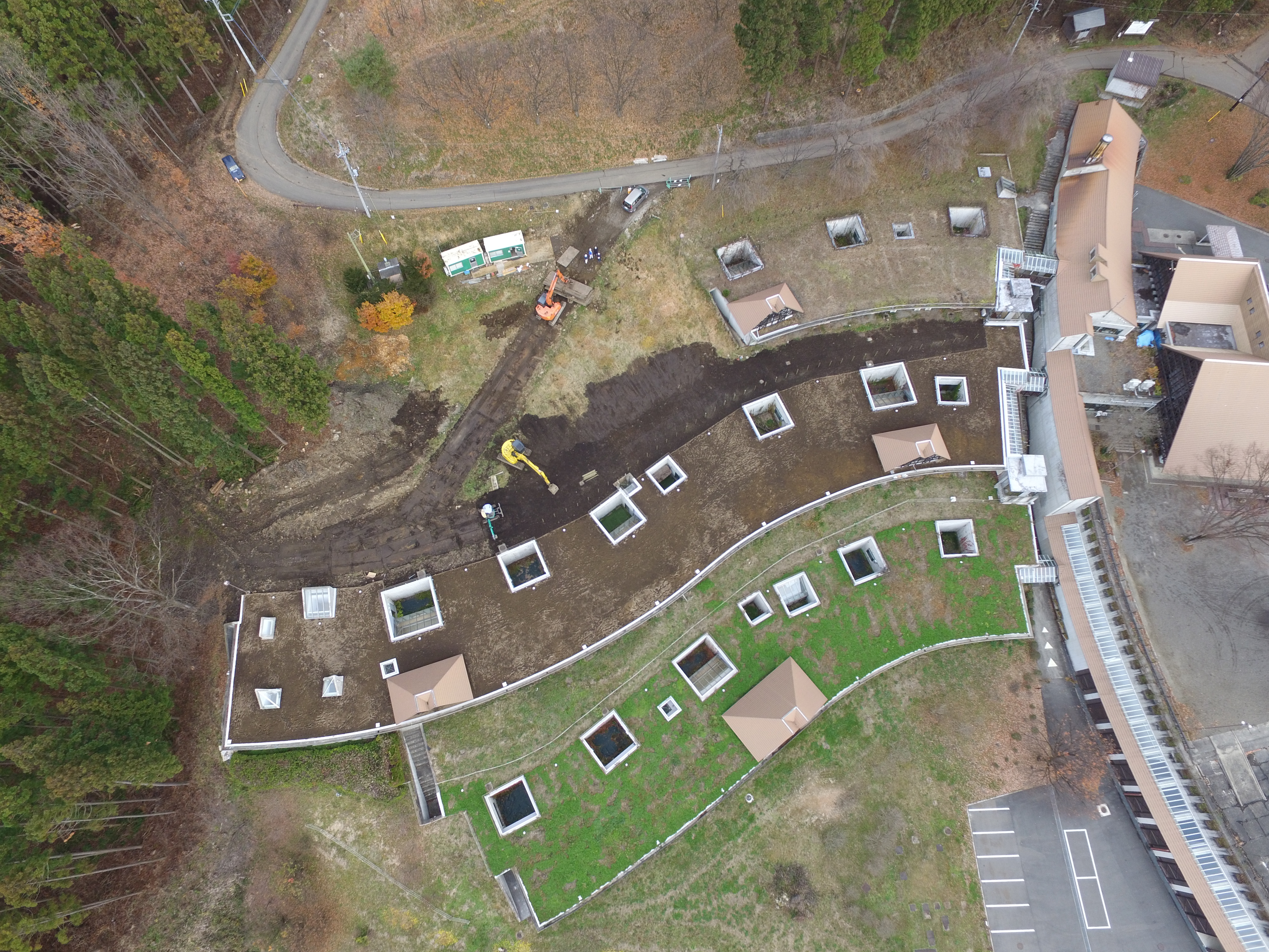 社屋上空及び世田谷区民なかのビレッジ上空よりドローンにより撮影を行いました。調査の一環としてドローンを用いて行う事が可能となりました。